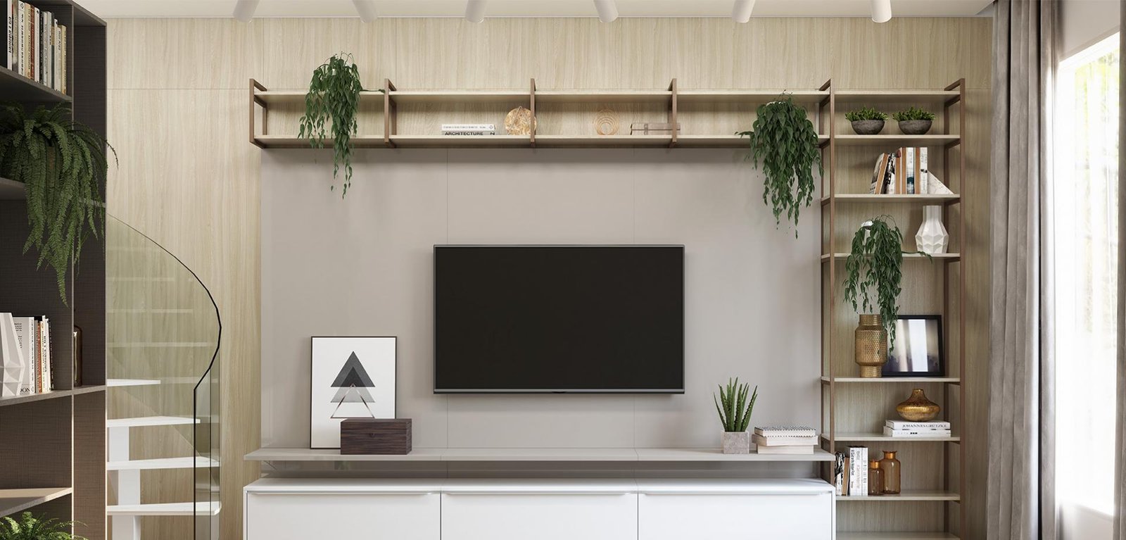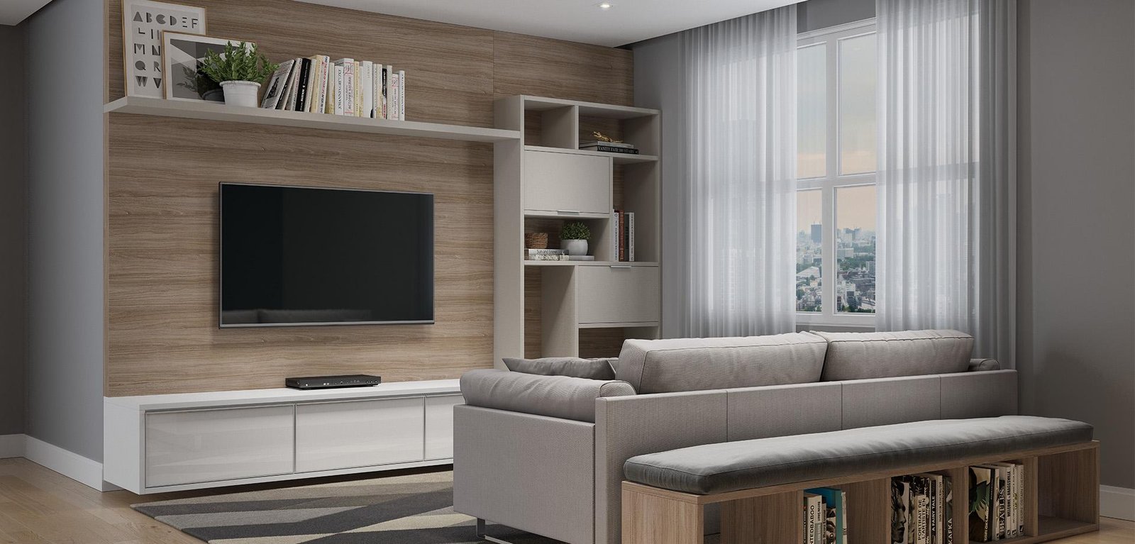 Tons claros trazem a sensação de conforto e acolhimento. Somados ao acabamento amadeirado, o ambiente ainda fica elegante e clássico!